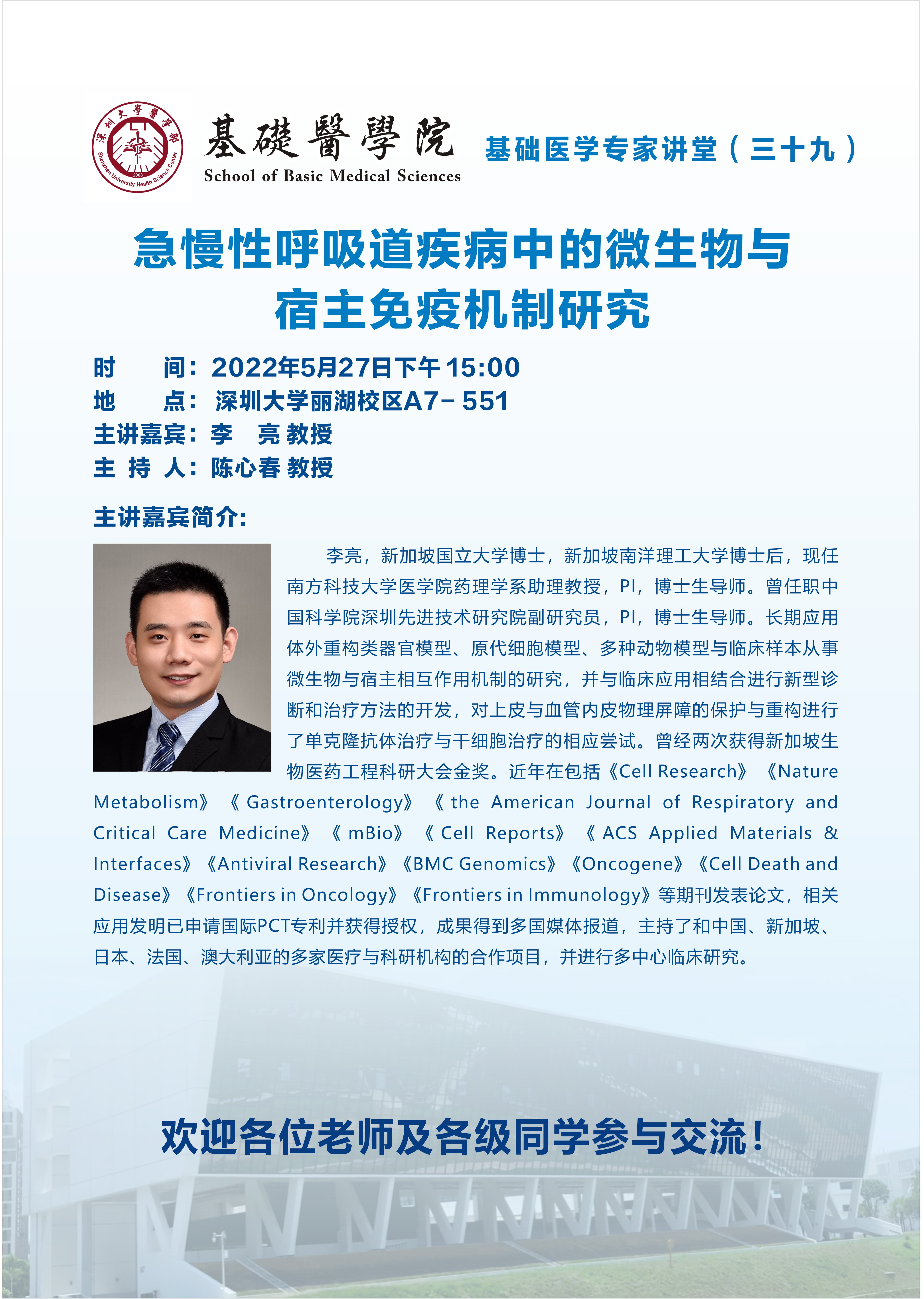 基础医学专家讲堂(三十九):急慢性呼吸道疾病中的微生物与宿主免疫机制研究