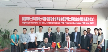 On the aspect of scientific research, the cooperation between the team of Prof. Danis Carson, the academician of the United States has been reached to build Carson international cancer center together in Shenzhen. This program will greatly improve the scientific research strength and medical treatment level of tumor treatment in Shenzhen. The jointly PhD program with Friedrich-Schiller-University Jena has entered the implementation phase. The first branch of this program has enrolled in Sept. 2017. Additionally, SZUHSC has sponsored many international academic conferences in recent years, such as Shenzhen - Hongkong Medical Science Forum (2014), Shenzhen Brain Science Forum (2015), the Fifth International Symposium on medicine, food, plant resources and active ingredients and Chinese Biomedical Ultrasound Association Annual Conference (2016). In this year, the 8th international symposium on DNA Damage Response & Human Diseases and the 1st international symposium on Radiation Therapeutics & Biology will be held in Shenzhen University, which greatly enhanced the international influence of the SZUHSC.