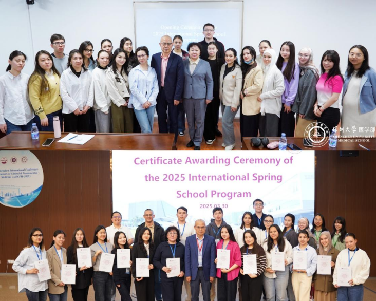 From March 18, 2025, the Medical School of Shenzhen University (SZU) hosted a 2 -week International Spring School Program at its Lihu campus. A total of 20 international students from Al-Farabi Kazakh National University (KazNU) participated.The International Spring School was jointly organized by SZU Medical School and the Shenzhen-Almaty Joint Laboratory for the Frontiers of Medical Science (salFMS), which was inaugurated at SZU in October 2024. The laboratory is dedicated to fostering academic exchange and collaboration among graduate students, postdoctoral researchers, and early-career scientists. The spring school was led by Dr. Nurzhanyat Ablaikhanova, a professor atAl-Farabi Kazakh National University.