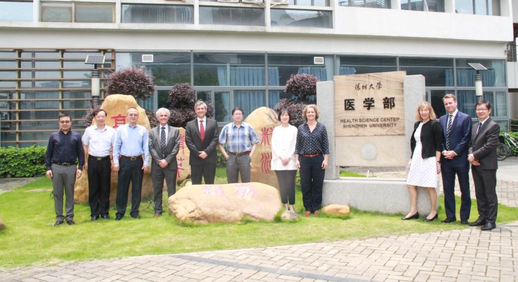 From 8th May 2017 to 13th May 2017, with the support of Shenzhen Huaqiang Goup the Delegation of the University of Sydney, including Prof. Kathryn Refshauge -Dean of the Faculty of Health Sciences, University of Sydney, Prof. Roger Garsia -Associate Dean of the Central Clinical School, University of Sydney, Dr. Cate Madill - Director of the Voice Research Laboratory at the Faculty of Health Sciences, University of Sydney and Dr. Daniel Novakovic Otolaryngologist (Ear Nose & Throat Surgeon) form University of Sydney, was invited by Porf. Weiguo Zhu - Director of SZUHSC to visit Health Science Center, Shenzhen University. The meeting about co-constructing “Huaqiang-China-Australia Speech Rehabilitation Medical Cooperation Center” between the delegation and the relevant program manager on SZUHSC has been held during the visit, in order to promote the program construction, and reach a number of consensuses on this program. Additionally, Shenzhen University, the University of Sydney and Huaqiang Group signed a memorandum of co-constructing Huaqiang-China-Australia Speech Rehabilitation Medical Cooperation Center.