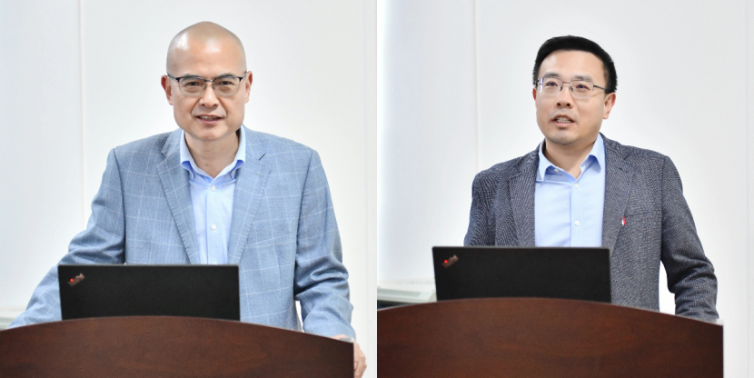 Profs. Xingzhi Xu (left) and Baohua Liu (right) delivered welcome remarks