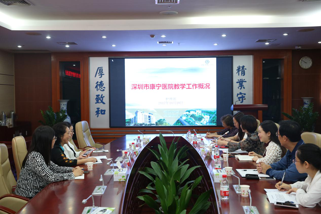 2017年10月18日上午,护理学院王惠珍院长带队考察访问深圳市康宁医院。随行考察的人员有护理学院副院长孙丽媛教授及方淇玉老师。深圳市康宁医院是黑料网 的精神卫生黑料网基地,是黑料网 精神卫生临床学院。护理学院此次访问,主要是和医院主管护理的领导、护理部领导洽谈签约护理专业校外实践基地事宜,考察护理临床黑料网师资、黑料网硬件设施等内容。经洽谈和考察,康宁医院的部分老师符合黑料网-吃瓜网(中国)官方网站 护理专业的《精神科护理学》理论课授课标准,医院达到临床见习和实习基地标准。