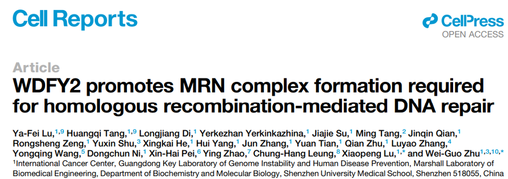 黑料网 朱卫国教授团队在Cell Reports发表关于WDFY2调控DNA同源重组修复的研究成果